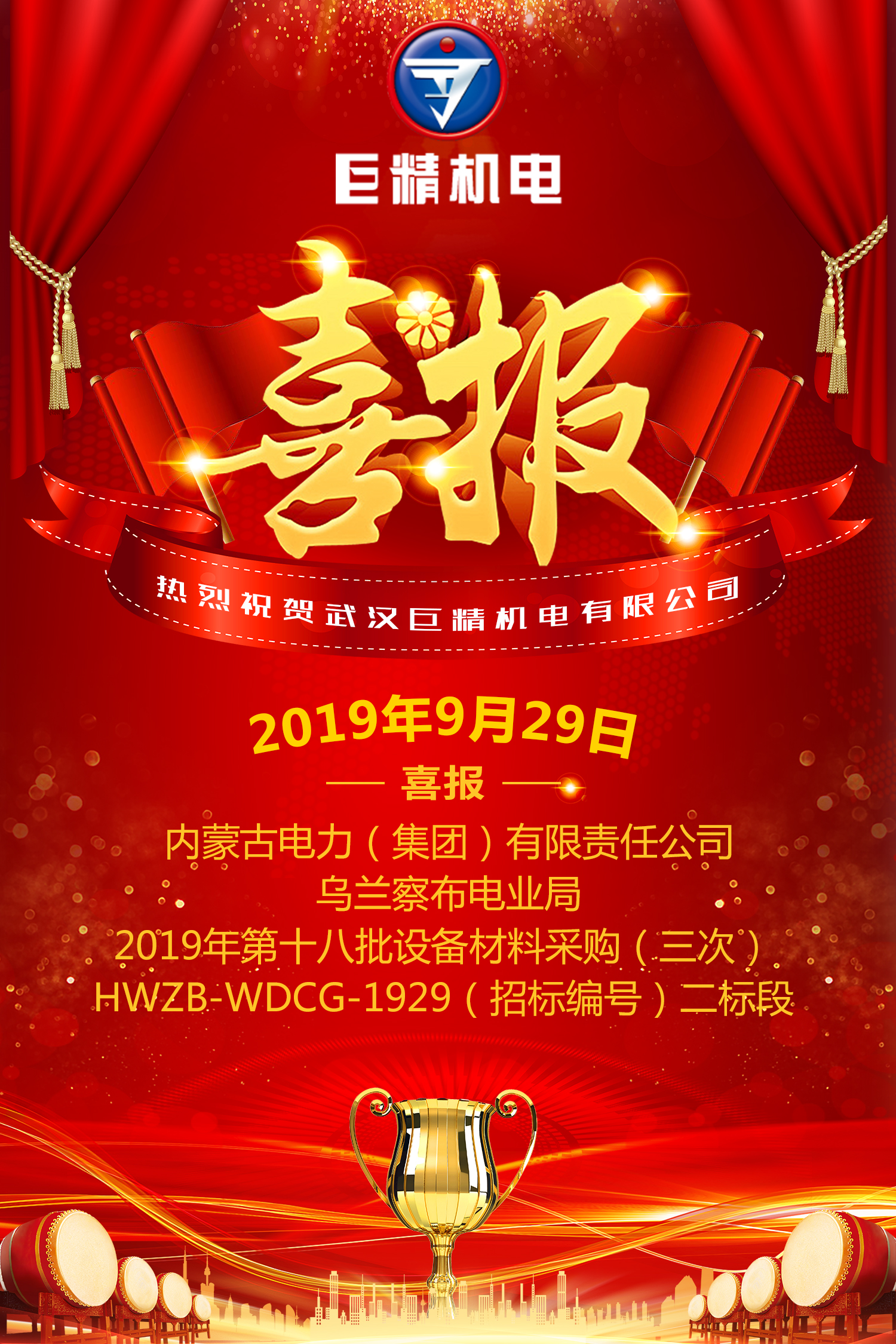 熱烈祝賀武漢巨精中標(biāo)內(nèi)蒙古電力(集團)有限責(zé)任公司烏蘭察布電業(yè)局2019年第十八批設(shè)備材料采購