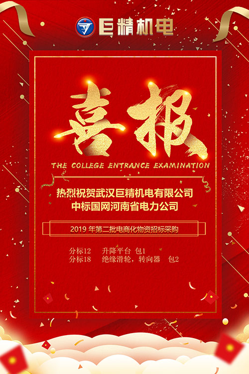 熱烈祝賀武漢巨精中標(biāo)國(guó)網(wǎng)河南省電力公司2019 年第二批電商化物資招標(biāo)采購(gòu)