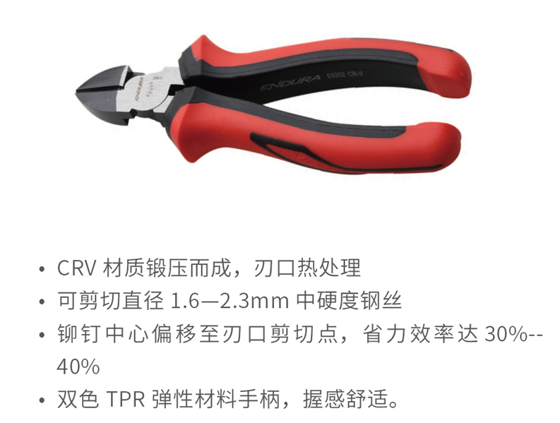 產(chǎn)品特點:\"Cr-V 材質(zhì)鍛壓而成,刃口熱處理 ? 可剪切直徑 1.6—2.3mm 中硬度鋼絲 ? 鉚釘中心偏移至刃口剪切點,省力效率\"
