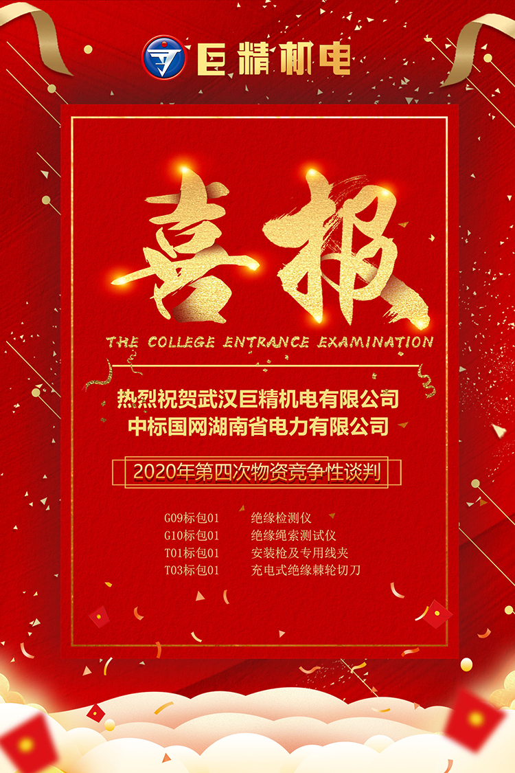 熱烈祝賀武漢巨精機電有限公司中標國網(wǎng)湖南省電力有限公司