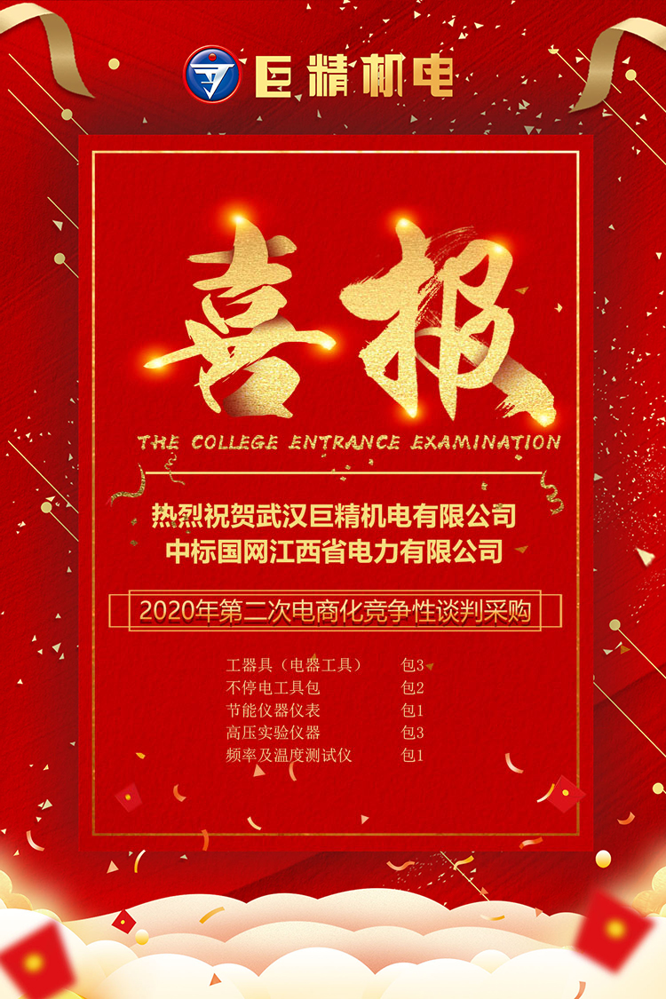 熱烈祝賀武漢巨精機(jī)電有限公司中標(biāo)國網(wǎng)江西省電力有限公司2020年第二次電商化競爭性談判采購