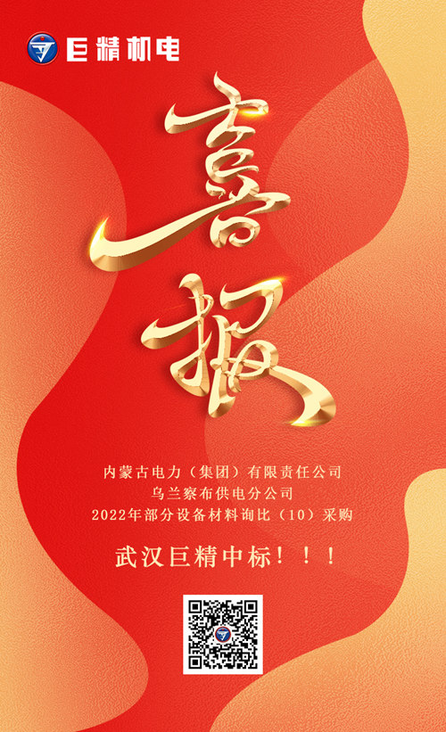 熱烈祝賀武漢巨精機(jī)電有限公司中標(biāo)內(nèi)蒙古電力(集團(tuán))有限責(zé)任公司烏蘭察布供電分公司2022年部分設(shè)備材料詢比(10)采購