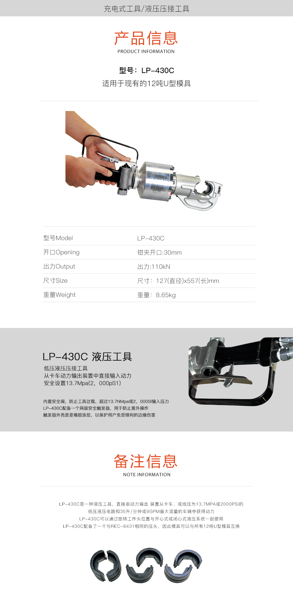 商品名稱:IZUMI LP-430C 中壓壓接鉗 液壓工具 用于12噸U型模具