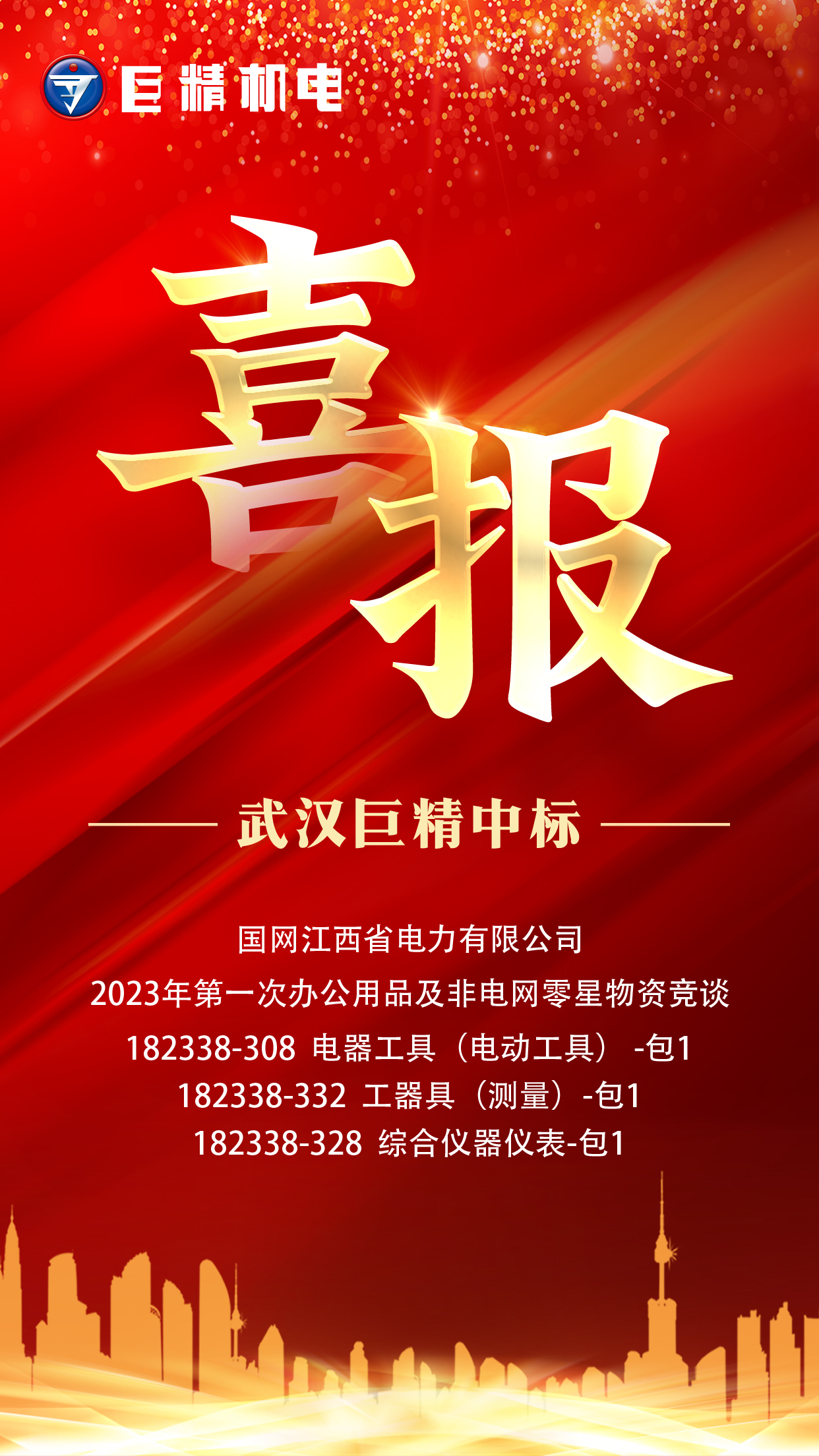 熱烈祝賀武漢巨精機(jī)電有限公司中標(biāo)國網(wǎng)江西省電力有限公司2023年第一次辦公用品及非電網(wǎng)零星物資競談