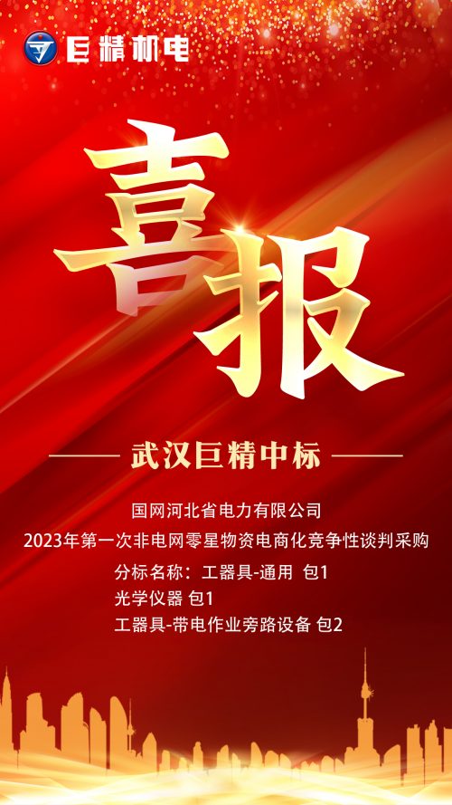 熱烈祝賀武漢巨精機(jī)電有限公司中標(biāo)國網(wǎng)河北省電力有限公司2023年第一次非電網(wǎng)零星物資電商化競(jìng)爭(zhēng)性談判采購項(xiàng)目