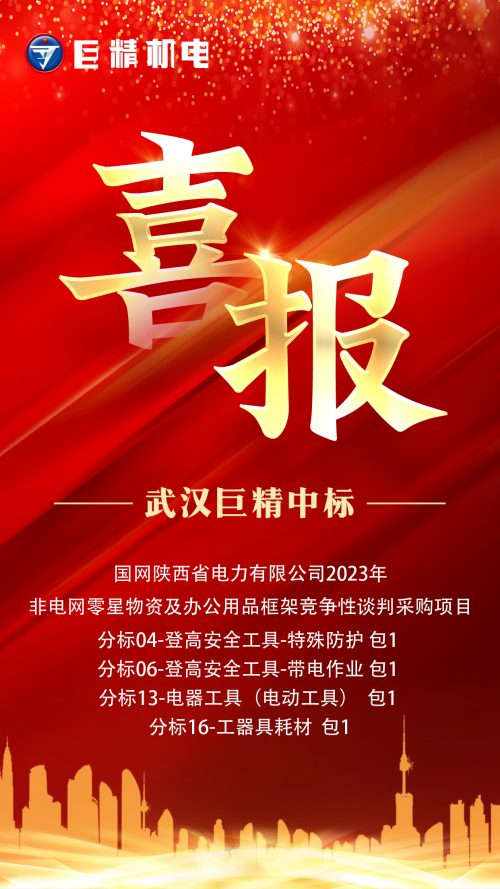 熱烈祝賀武漢巨精機電有限公司中標國網(wǎng)陜西省電力有限公司2023年非電網(wǎng)零星物資及辦公用品框架競爭性談判采購項目