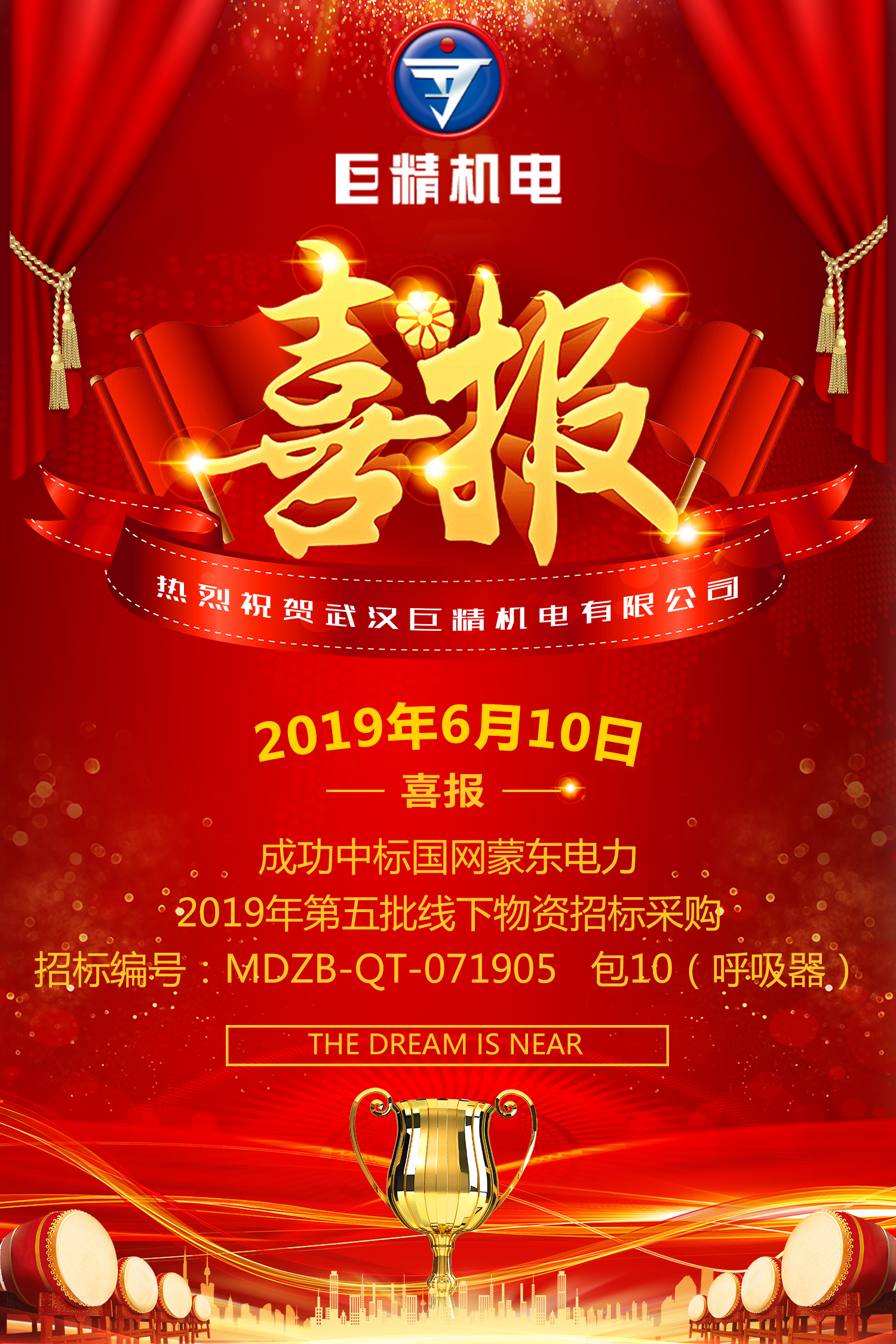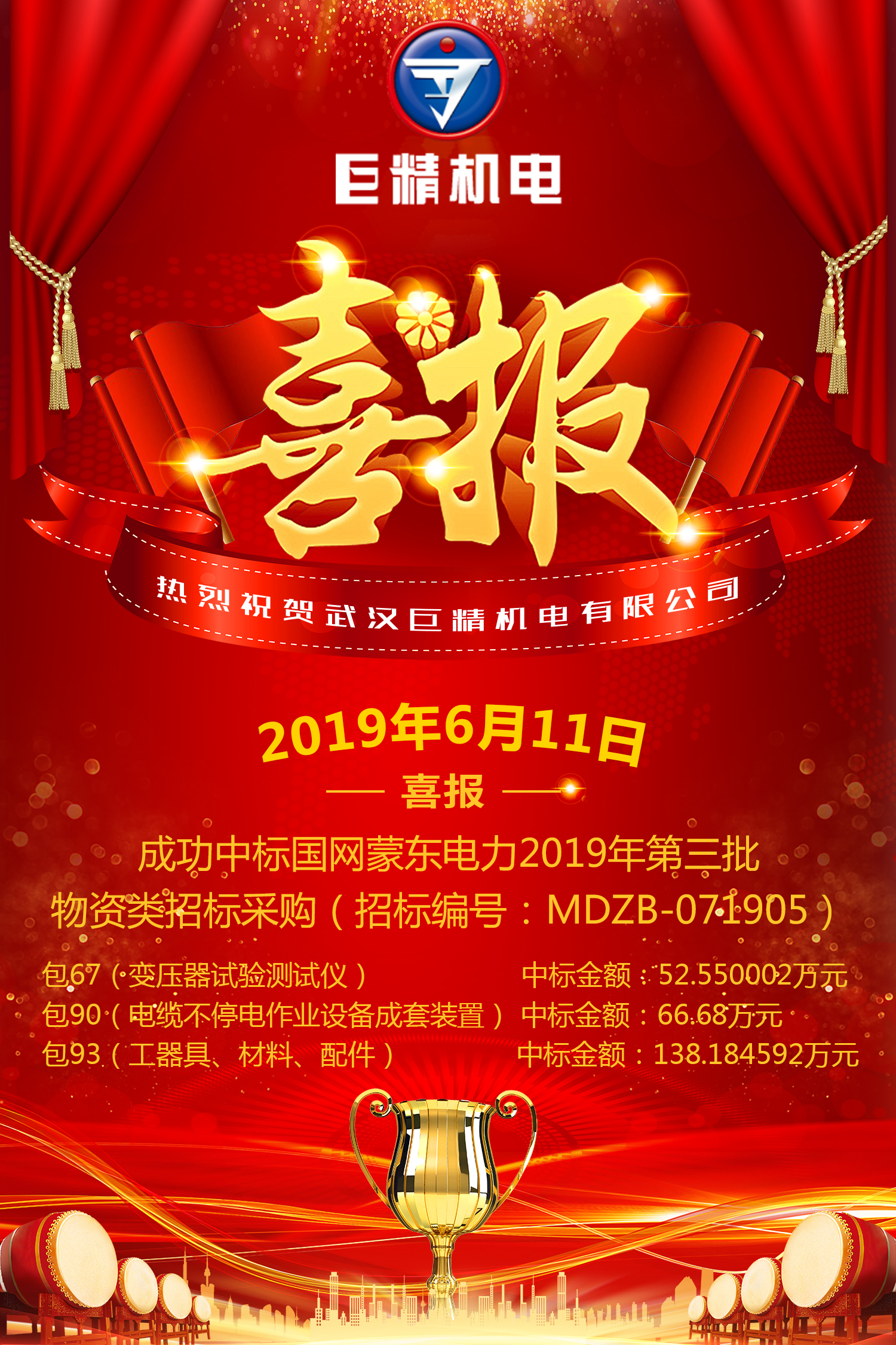 熱烈祝賀武漢巨精中標(biāo)國網(wǎng)蒙東電力2019年 第五批線下物資招標(biāo)采購 及 第三批物資類招標(biāo)采購!喜報連連~